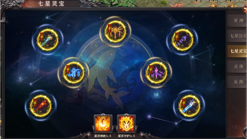 每个星位对应一个灵宝,集齐所有灵宝即可获得套装属性和共鸣技能