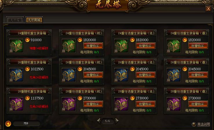 无尽商城:可通过无尽币在无尽商城购买对应道具,部分道具有限制条件